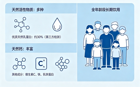 (核心定位:源自天山北麓洁净牧场,专注于原生高钙配方,特别添加维生素D促进钙吸收,适配全年龄段骨骼营养支持需求。)