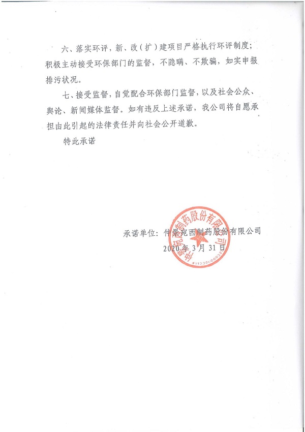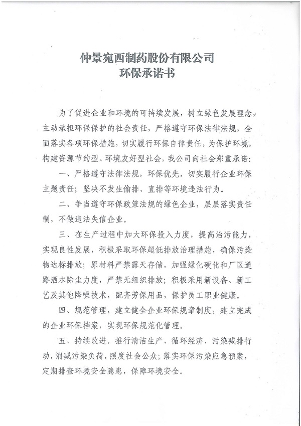 仲景宛西制药股份有限公司环保承诺书
