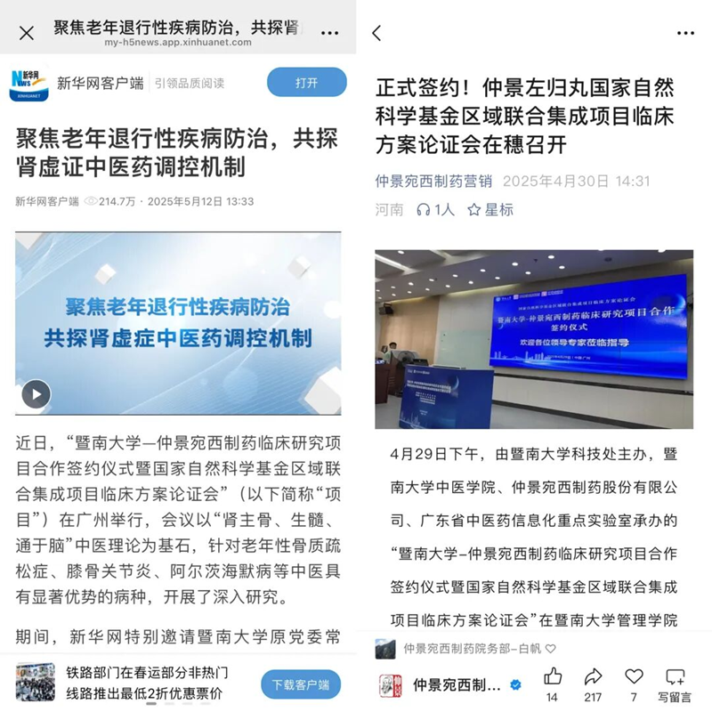 图新华社报道、仲景宛西制药营销公众号截图