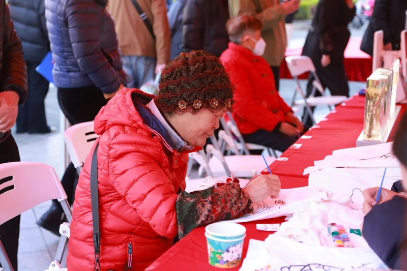 在DIY涂鸦区,参与其中的不仅有小朋友,更有许多“银发族”。几位阿姨正低头描画着仲景卡通形象,一位穿红色羽绒服的阿姨一边调色一边笑着说:“平时都是给孙子画画,今天自己也来体验一把,画个‘好体质’带回家,图个吉利!”